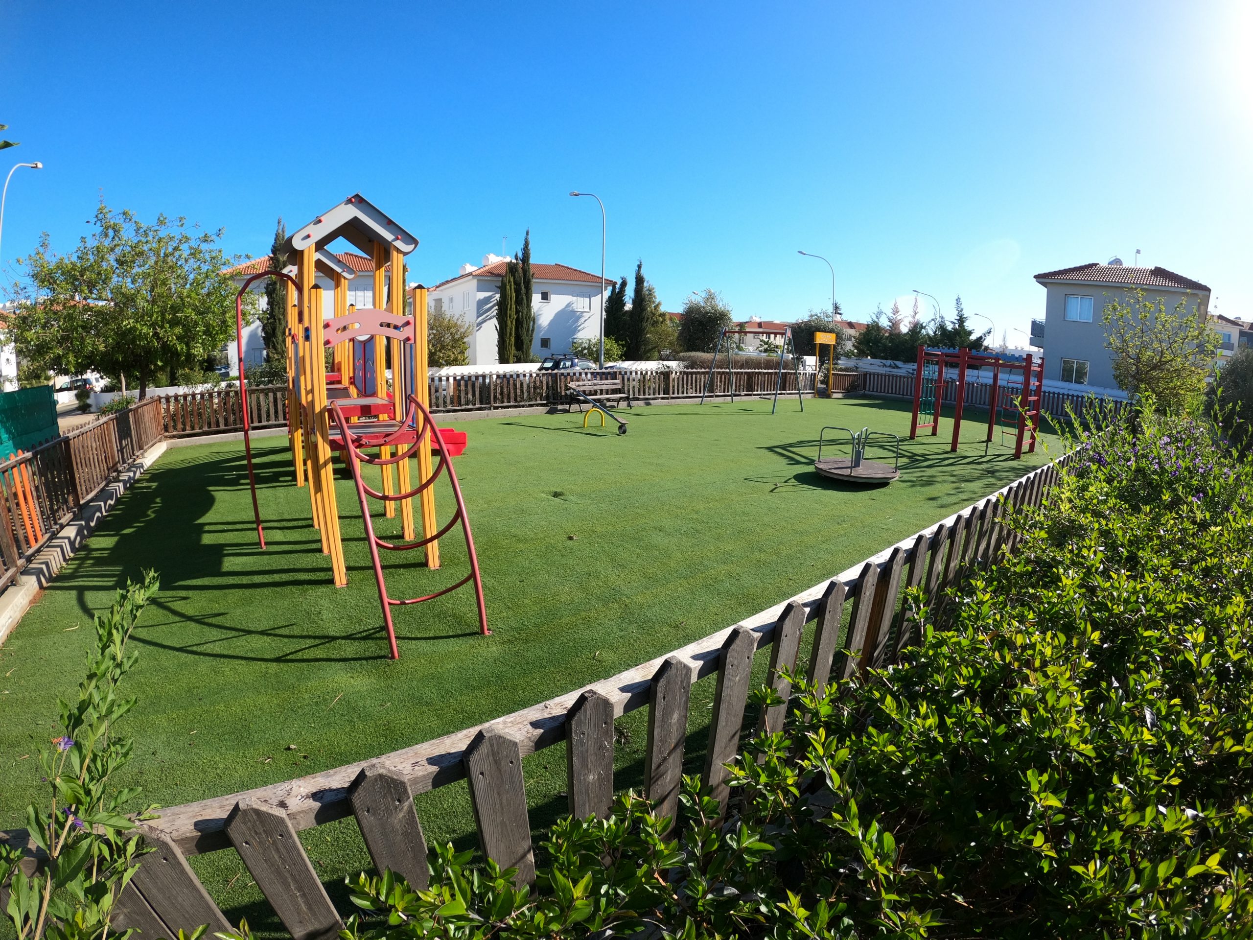 What if the kids get tired of sand and water? Although that’s unlikely, just in case, there’s a playground!