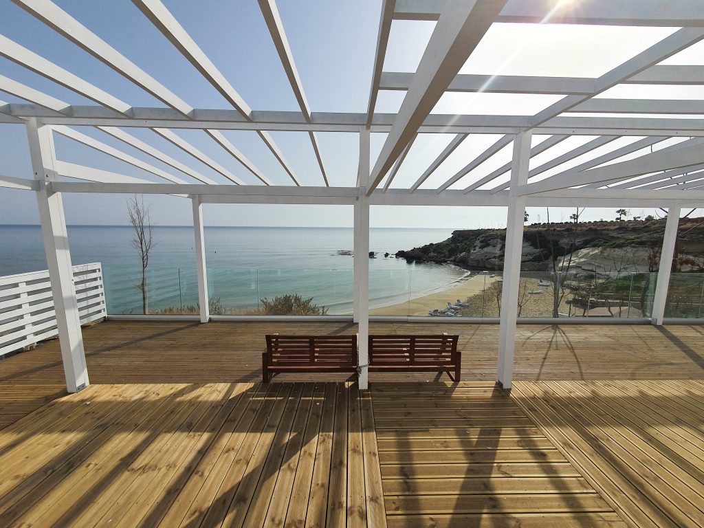 Our local Fireman’s Beach, also known as MAAD, is located in a picturesque bay. It’s very popular among locals and tourists staying in Kapparis. Cliffs rise above the beach with a fantastic walking path from which you can admire the sunrise and the azure sea. On the cliff above the beach is a fantastic bar offering snacks, breakfast, and drinks with a view of the beach and horizon. In the evening, it transforms into a cozy place with drinks and live music. Further along the coast, there is a wild and romantic beach with steep stairs leading down. Even farther, you will find Malama Beach with another seaside café. For those who enjoy swimming and observing underwater life, we recommend the route from one beach to another, where you might encounter turtles in addition to fish.