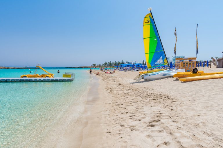 Everyone has heard of the magnificent Nissi Beach in Agia Napa! White sand, a large shallow area in the sea, an island, and a pathway to it when the water level drops. For those craving entertainment, there are bars and music. This beach has been repeatedly named one of the most beautiful and best beaches in the world in various polls. Anyone visiting Cyprus must also visit this beach.